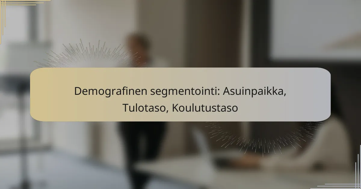 Demografinen segmentointi on prosessi, jossa markkinat jaetaan eri ryhmiin sukupuolen, asuinalueen ja elämäntavan perusteella. Parhaat käytännöt sisältävät selkeät kriteerit, tehokkaat työkalut ja menetelmät, sekä ymmärryksen siitä, miten nämä tekijät vaikuttavat kuluttajakäyttäytymiseen.